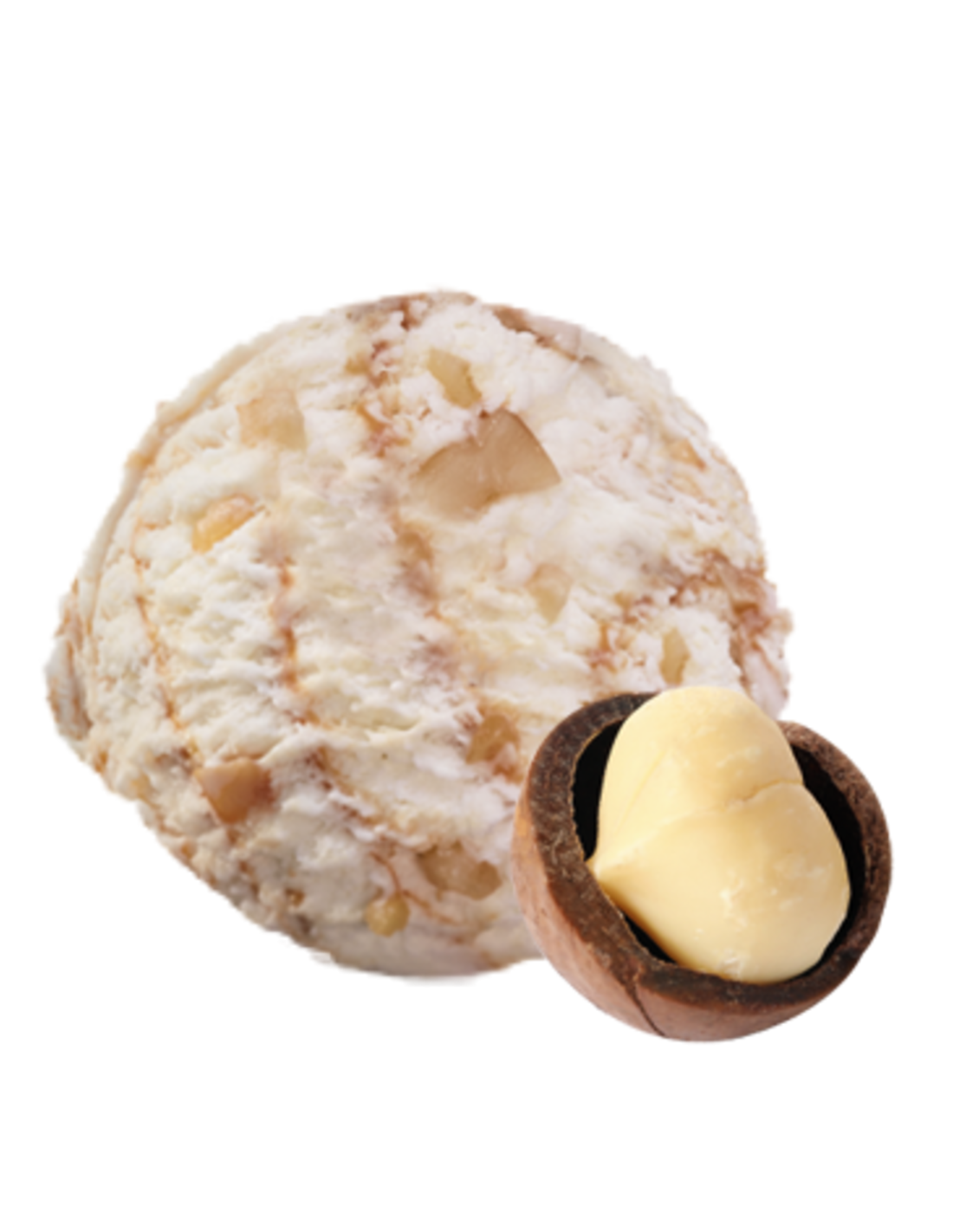 Ingredientes: LECHE desnatada reconstituida, jarabe de glucosa, azúcar, suero LÁCTEO concentrado, grasa de coco, LECHE concentrada desnatada LECHE condensada (LECHE evaporada, azúcar, LACTOSA) (5,4%), NATA (4,3%), trozos de NUECES MACADAMIA (2,8%), emulgente (monoglicéridos y diglicéridos de ácidos grasos), estabilizantes (goma garrofín, goma guar), maltodextrina (fibra), sal, jarabe de azúcar invertido, aroma natural (contiene LECHE). Puede contener OTROS FRUTOS DE CÁSCARA, SOJA y HUEVO.