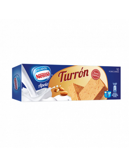 Ingredientes: Leche concentrada desnatada reconstituida, agua, trocitos de almendras azucaradas (11 %) [azúcar, almendras (3%)], azúcar, grasa de coco, turrón (5 %) [almendra, jarabe de azúcares (azúcar, jarabe de glucosa y fructosa, agua), miel, clara de huevo], jarabe de glucosa, suero lácteo, jarabe de azúcar caramelizado, emulgente (monoglicéridos y diglicéridos de ácidos grasos), estabilizantes (goma garrofín, goma guar). Puede contener otros frutos de cáscara y cacahuetes.