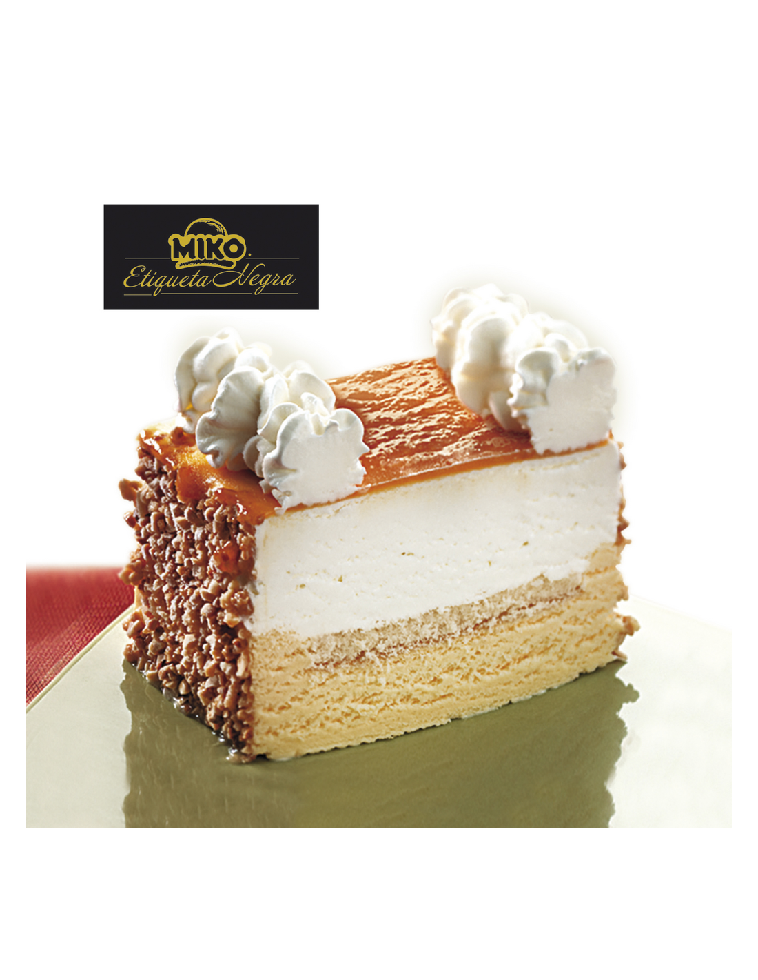 Helado mantecado y sabor whisky, con bizcocho bañado al whisky, decorado con yema y crocanti.