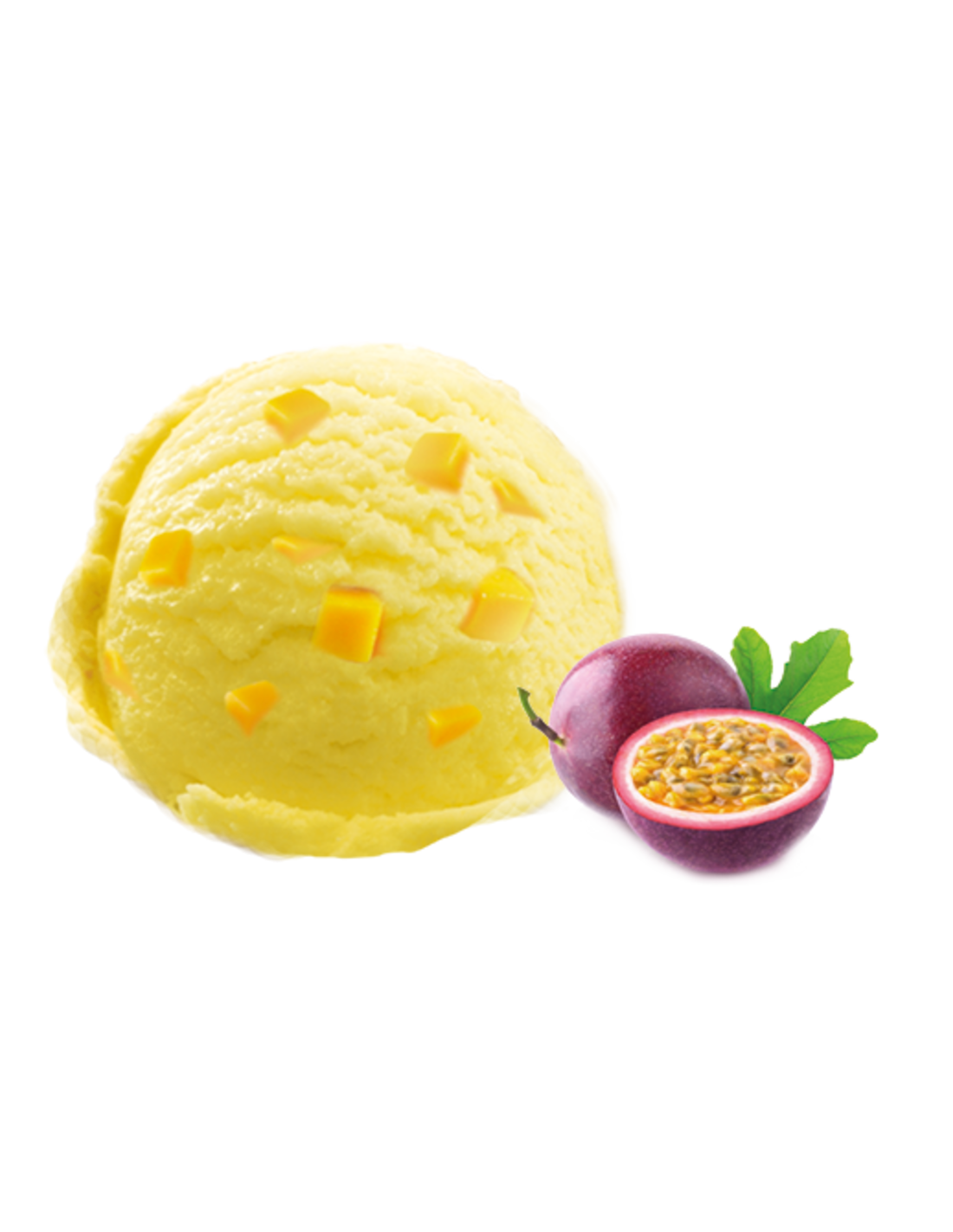 Fruta de la pasión con trocitos de mango fresco.