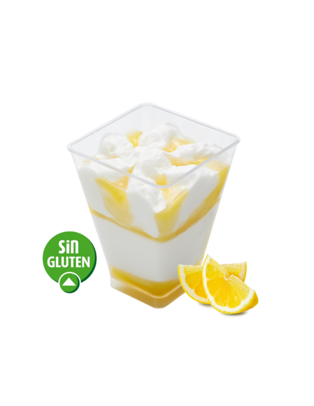 Ingredientes: agua, leche desnatada en polvo reconstituida, zumo de limón a partir de concentrado (18%), azúcar, jarabe de glucosa, grasa vegetal (coco), suero de leche, almidón modificado de maíz, aromas naturales, emulgentes (mono y diglicéridos de ácidos grasos, E477), estabilizantes (goma garrofín, goma guar, carragenanos, pectinas), correctores de acidez (ácido láctico, citrato de sodio), colorante (luteína).