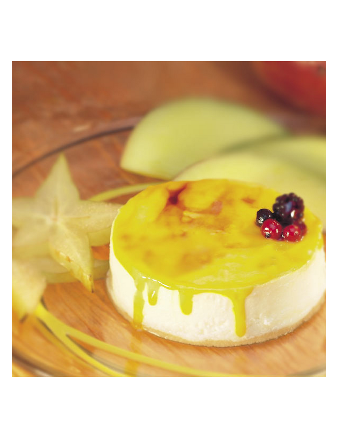 Ingredientes: Nata pasteurizada (leche), puré de mango (mango) (15,3%), queso blanco pasteurizado (15%) (leche pasteurizada de vaca, nata, proteínas de leche, sal, estabilizante (E 410), conservador (E 200) y fermentos lácticos), gelatina (jarabe de glucosa y fructosa, agua, azúcar, glicerina, gelificante: E-440i, acidulante: E-330,espesante: E-415, aroma), agua, azúcar, galletas (harina de trigo, azúcar, aceite vegetal (aceite de girasol alto oleico), jarabe de glucosa y fructosa, salvado de trigo, gasificantes (carbonato ácido de sodio y carbonato ácido de amonio) sal) puré de cereza, estabilizante para nata (jarabe de glucosa deshidratado, gelatina, almidón modificado, yema de huevo en polvo, sal, aroma), frutos rojos (grosella roja, mora, grosella negra, cereza, arándano, frambuesa)