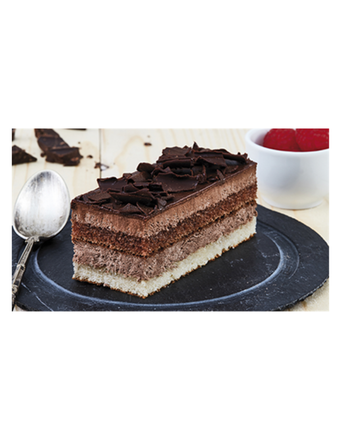 Ingredientes: Mousse sabor chocolate [preparado de grasas vegetales y grasa láctea ultra pasteurizado (agua; grasa vegetal totalmente hidrogenada (25%) (palmiste, palma): NATA (6%); LECHE desnatada en polvo; glucosa; proteínas de LECHE; emulgentes: E472b, E472e y lecitina de SOJA: estabilizantes: E460i, E466: sal y colorante: beta caroteno): agua: LECHE entera preparado con cacao (dextrosa: cacao desgrasado en polvo (45%); gelatina: almidón modificado); azúcar; cobertura con cacao (azúcar; grasa vegetal parcialmente hidrogenada (palmiste): cacao desengrasado en polvo (20%): emulgentes: E322, E492 y aroma);cobertura de chocolate negro (pasta de cacao: azúcar; manteca de cacao; emulgente: lecitina de SOJA y aroma (vainilla natural)): preparado estabilizante (azúcar; jarabe de glucosa deshidratado; gelatina: almidón modificado: suero de LECHE en polvo; maltodextrina; LECHE desnatada en polvo; espesantes: E 415, E 412; estabilizante: E450i: emulgentes: E472a, E472b; sal)]: preparado de azúcares [jarabe de glucosa; agua; sacarosa; conservadores: E 21 1 , E 2CX)l; bizcocho [harina de TRIGO; HUEVO líquido pasteurizado: azúcar: agua: jarabe de glucosa y fructosa: cacao desgrasado en polvo: emulgentes: E471, E477, E470a; sal; dextrosa; almidón de TRIGO); cobertura de crema al cacao con avellanas [azúcar: cacao desgrasado en polvo (20%): aceites vegetales (palma, colza, girasol): grasa vegetal (palma): grasas vegetales totalmente hidrogenadas (palmiste, palma); pasta de AVELLANA; LECHE desnatada en polvo; emulgente: E322 y aroma]: virutas de chocolate [azúcar: pasta de cacao: manteca de cacao: emulgente: lecitina de SOJA: aroma natural (vainilla) y aroma].