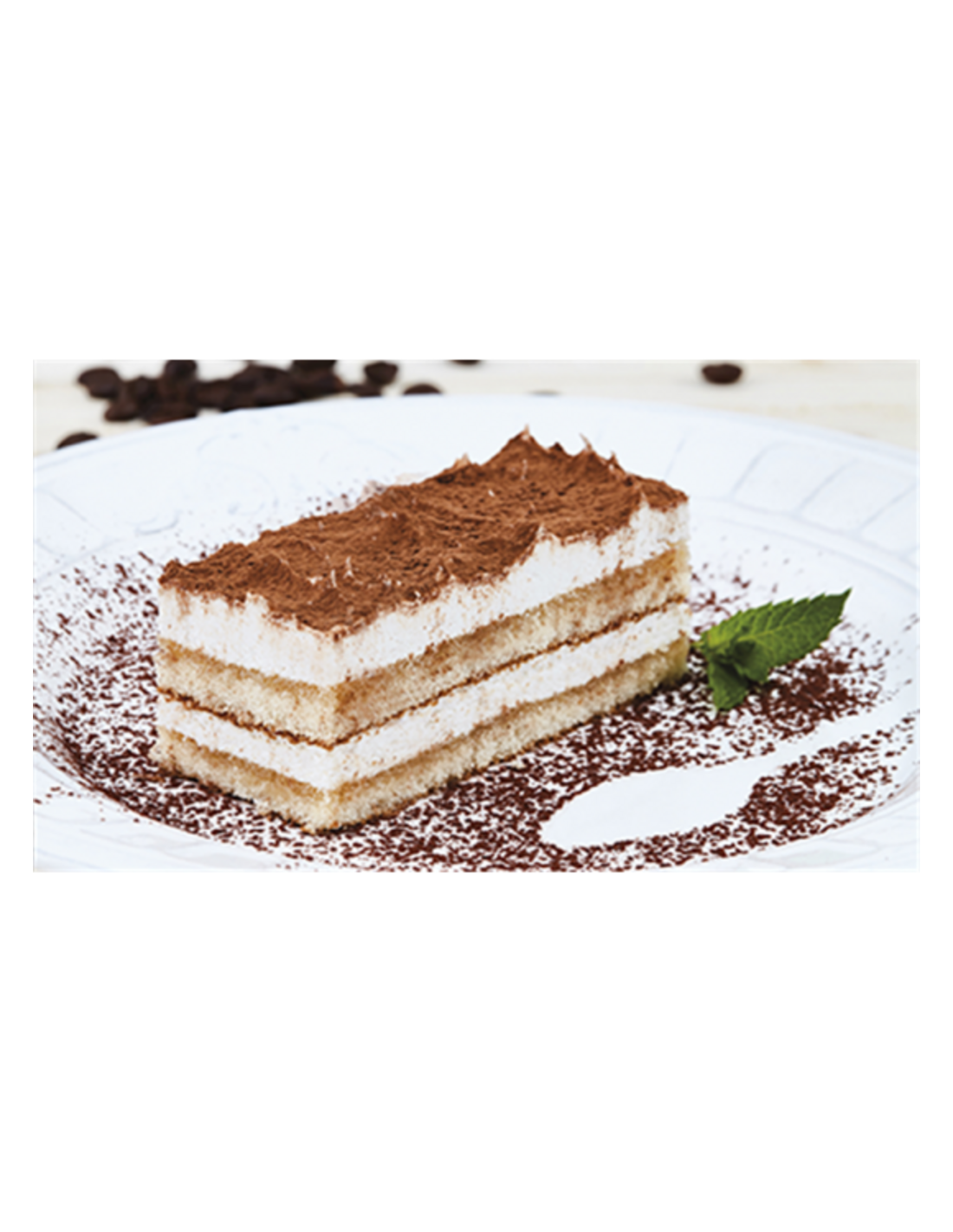 Ingredientes: Mousse con queso [preparado de grasas vegetales y grasa láctea ultra pasteurizado (agua; grasa vegetal totalmente hidrogenada (25%) (palmiste, palma); NATA (6%); LECHE desnatada; glucosa; proteínas de LECHE; emulgentes: E472b, E472e, lecitina de SOJA; estabilizantes: E460i, E466; sal; colorante: beta caroteno); agua; preparado sabor queso (dextrosa; preparado lácteo en polvo [LECHE]; almidón modificado; gelatina; colorante:E150d, aromas); azúcar; QUESO fresco bajo en grasa (4%) (mazada de MANTEQUILLA; conservador: E202 y fermentos lácteos); preparado estabilizante (azúcar; jarabe de glucosa deshidratado; gelatina, almidón modificado; suero de LECHE en polvo; maltodextrina; LECHE desnatada en polvo; espesantes: E415, E412; estabilizante: E450i; emulgentes: E472a, E472b y sal); preparado con azúcares sabor café [jarabe de glucosa; agua; sacarosa; conservadores: E21 1, E200; aroma natural de café (06%)]; bizcocho [harina de TRIGO; HUEVO líquido pasteurizado; azúcar; agua; jarabe de glucosa y fructosa, emulgentes: E471, E477 y E470a, sal, dextrosa, almidón de TRIGO]; polvo de cacao alcalinizado y desgrasado.