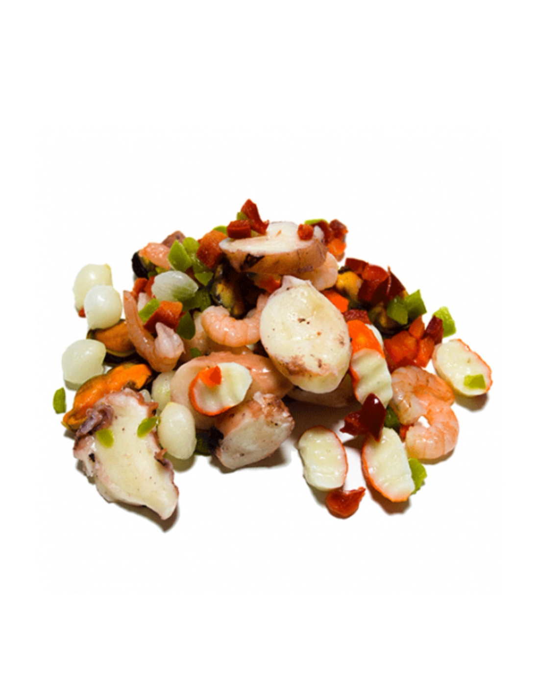 Ingredientes: SURIMI, MEJILLÓN CARNE, POTÓN RODAJA, PIMIENTO, LANGOSTINO PELADO, CEBOLLA, PULPO CABEZA, ACEITUNA