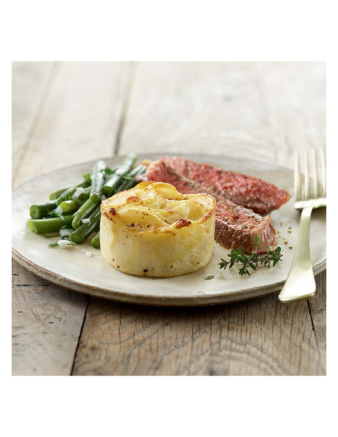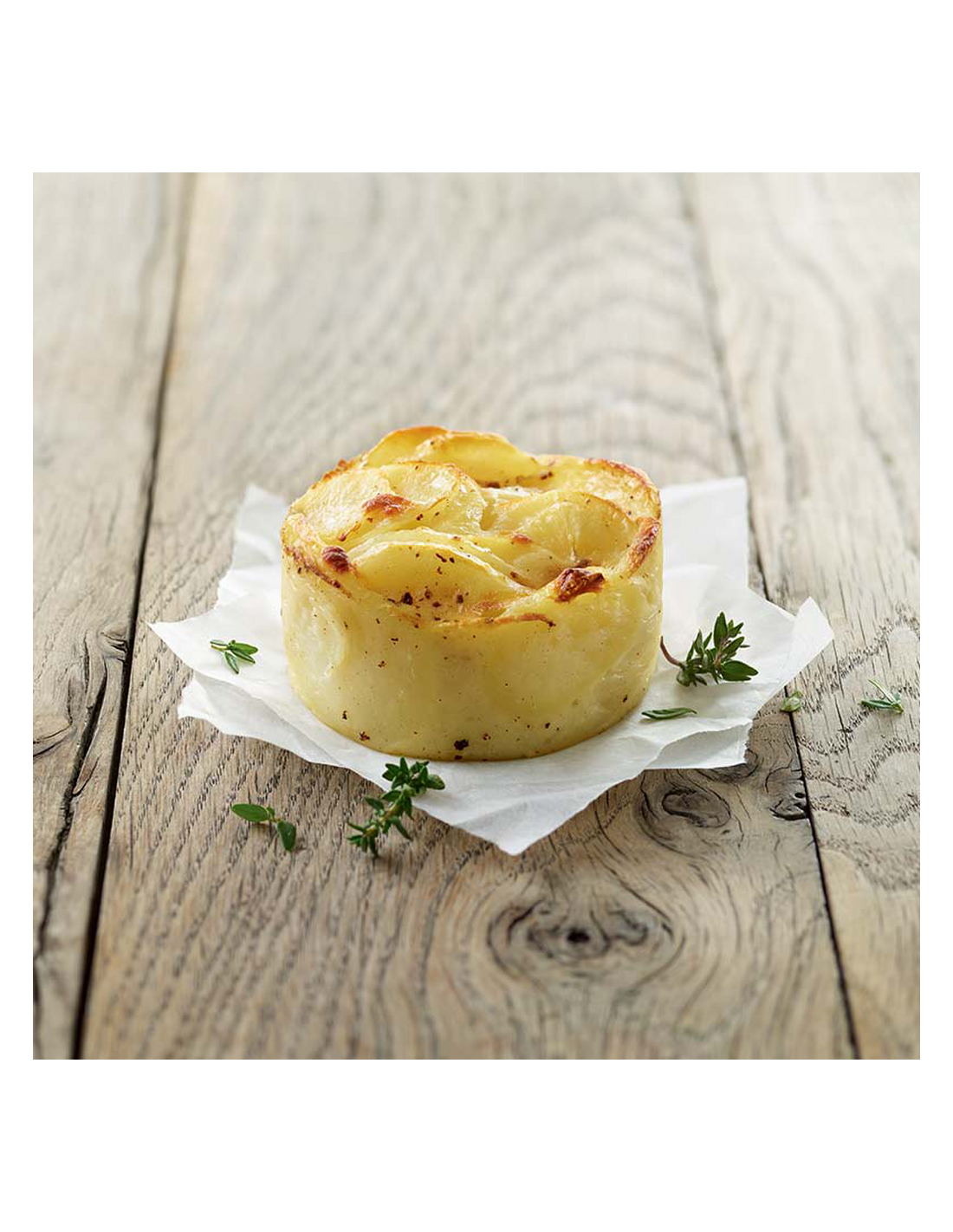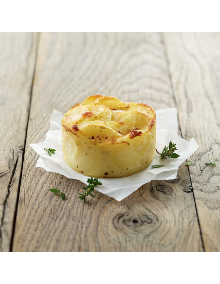 Ingredientes: Patatas 56.1% (patatas, sal), agua, nata (nata de leche, estabilizante: carragenanos (E407)), leche en polvo, fécula de patatas, mozzarella (leche), yema de huevo, empolva de queso (polvo de queso fundido (leche), suero lácteo en polvo (leche), sal), aceite de girasol, sal, ajo, almidón de patata modificado, pimienta negro, texturante: goma de xantano (E415).