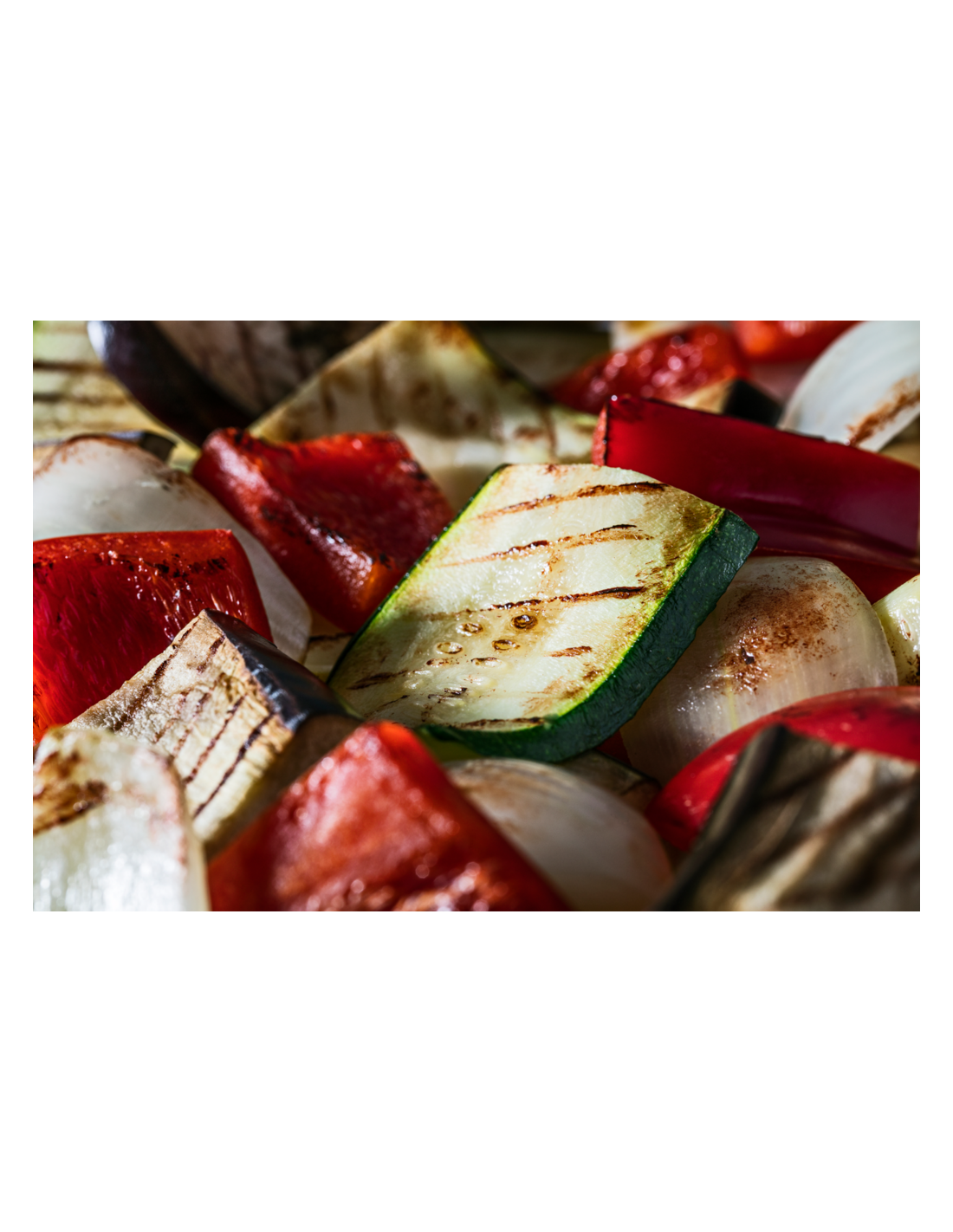 Ingredientes: Verduras Asadas: pimientos rojos, berenjenas, calabacines asados, cebollas. puede contener: APIO