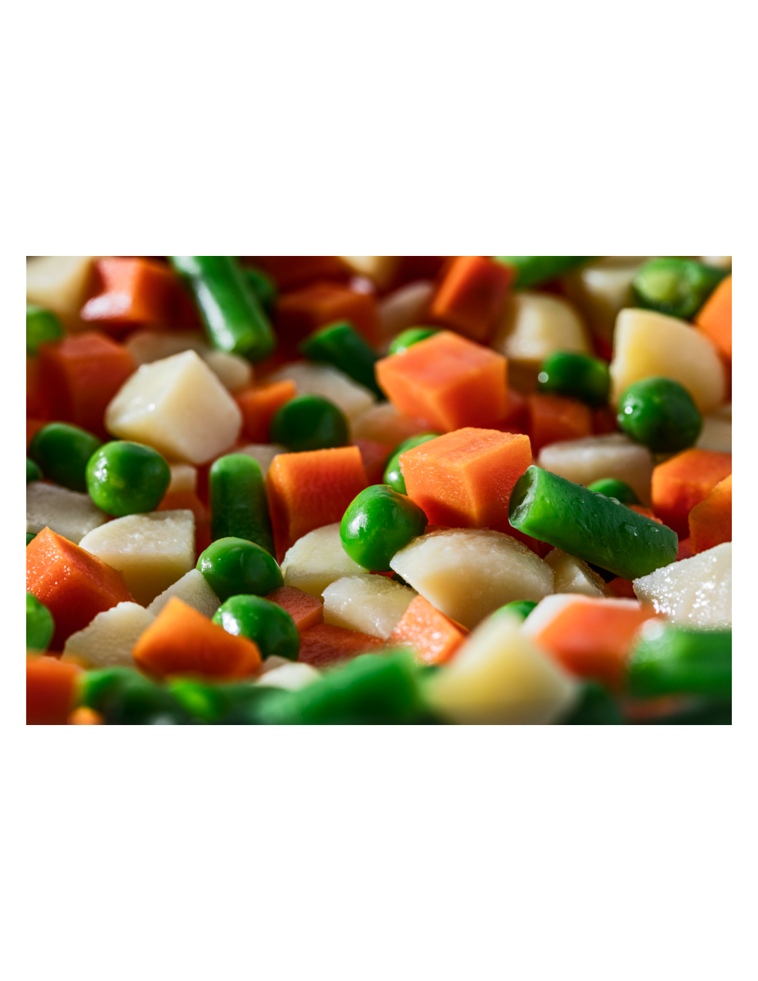 Ingredientes: Patatas (estabilizante : E450) 60%, zanahorias, guisantes, judías verdes.