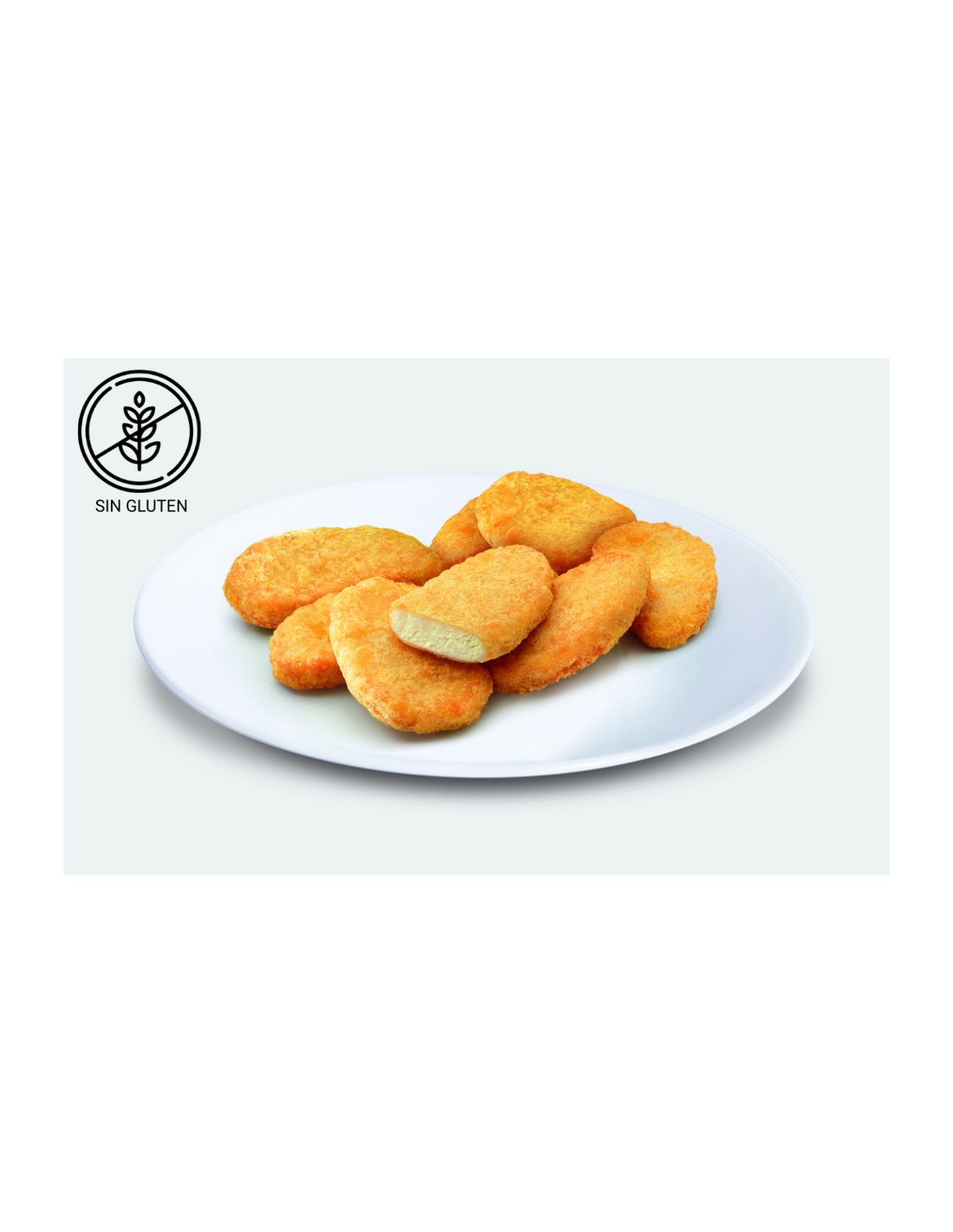 Ingredientes: Relleno (62%): pollo* (60%), agua, proteína de soja, copo de patata, preparado para rebozar (harina de arroz, sal, dextrosa de maíz), espesante (E 464), harina de arroz, fibra de bambú, sal, huevo en polvo, estabilizantes (E 450, E 451), aroma, potenciadores del sabor (E 621, E 631 E 627) y albúmina de huevo en polvo. *Carne separada mecánicamente de pollo. (Porcentajes calculados en base a/ re//eno). Rebozado: preparado para rebozar [harina de maíz y de arroz, almidón, almidón modificado, dextrosa, sal, gasificantes (bicarbonato sódico, E 450), espesantes (goma guar, E 461)], agua, aceite de girasol, fécula de patata, harina de maíz, almidón, espesante (E 415) y concentrado de vegetales. Consultar trazas de alérgenos.