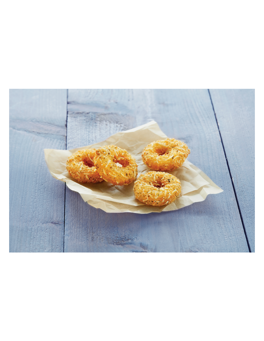 Ingredientes: harina (trigo, maíz), agua, Mozzarella (leche) (18%) (FDM (40%), cuaio de origen microbiológico), queso de pasta dura (leche) [CFDM (33%), cuajo de origen microbiológico], preparación de queso cheddar fundido (leche) 19%) (FDM (40%), cuaio de origen microbiológico) (cheddar (leche) (51%), agua. almidón de patata modificado, grasa láctea, proteína de la leche, sal de fundido (E331)], aceites vegetales (nabina, girasol en proporciones variables), tiras de patatas, queso procesado en polvo (leche) [queso en polvo (leche), leche desnatada en polvo], almidón (trigo, patata), almidón de patata modificado, sal, proteína de la leche, hierbas, espesante (E461), levadura, leche desnatada en polvo, agentes leudantes (E450), ajo, cebolla.