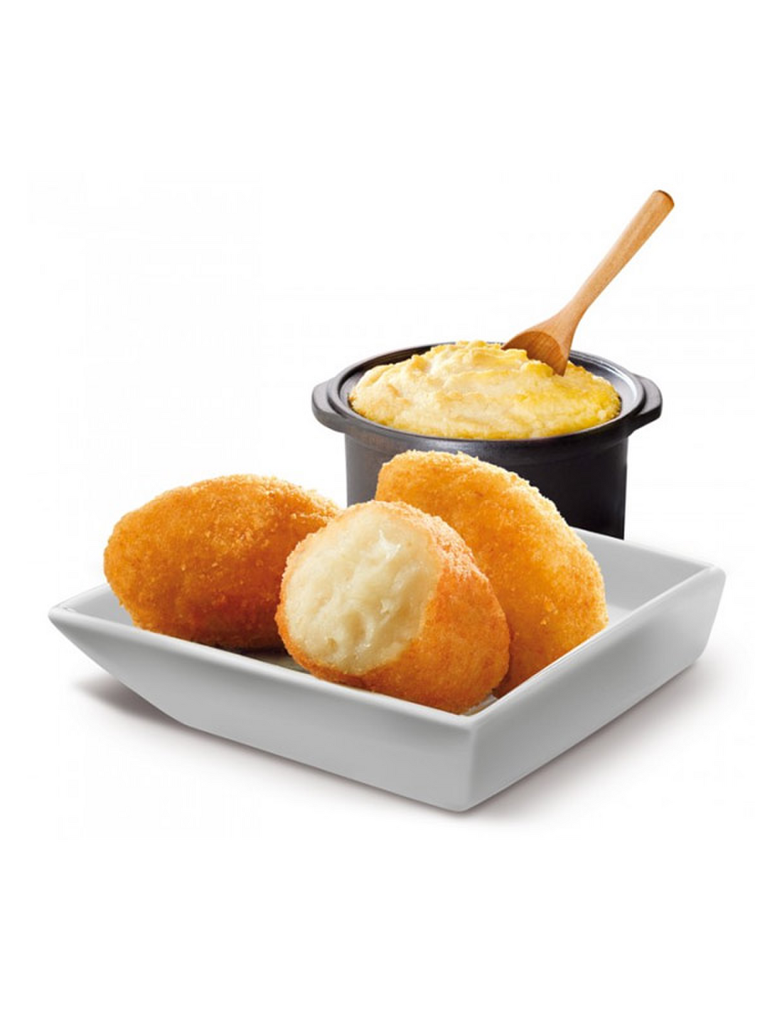 Ingredientes: Relleno (88%): Agua, bacalao (32%), nata pasteurizada, almidón de maíz, harina de trigo, aceite de girasol, almidón modificado de maíz, aroma natural (contiene leche) y especias. (Porcentajes calculados en base a/ relleno).