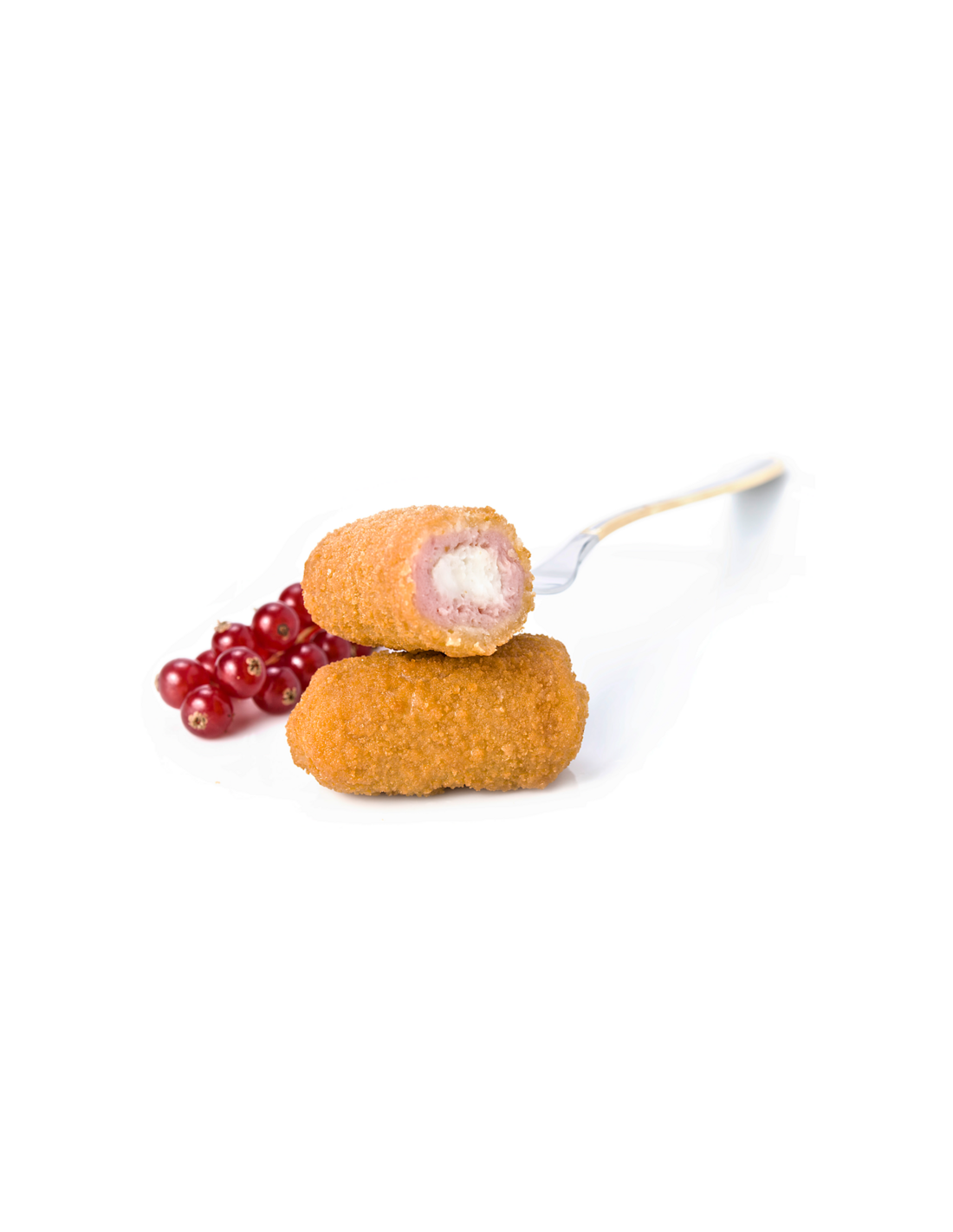 Ingredientes: Fiambre (45%) [Magro de cerdo, agua, came de pavo separada mecánicamente, fiambre de cerdo (carne de cerdo, agua, fécula, sal, proteína de SOJA, proteína de LECHE, azúcar, dextrosa, LACTOSA, aromas, estabilizan\es (E-451 , E-407), potenciador del sabor (E-621 ), antioxidante (E- 316), (E-250) y colorante (E-120)), almidón de TRIGO, proteína de SOJA, fibra vegetal, almidón, sal, dextrosa, aroma de humo, gelificante (E-7), estabilizantes (E-451i, E-471 emulgente (E-262), conservadores (E- 270, E-250), colorantes (E-160c, E-120) y antioxidante (E-301)], Empanado [Pan rallado (harina de TRIGO, agua, sal, levadura y colorantes (E-160e, E- 160a)), agua, harina de TRIGO, almidón, sal y potenciador del satnr (E-621)1, Salsa bechamel (25%) [LECHE entera en polvo hidratada, harina de TRIGO, almidón, aceite de girasol, preparado LÁCTEO (QUESO (0,4%), almidón modificado, aceite de girasol, LACTOSUERO, sales de fundido (E452, E-331), sal y conservador (E-202)), sal, aroma, potenciador del sabor (E-621 ) y gelificante (E-412)]. Puede contener trazas de CRUSTÁCEOS, MOLUSCOS, PESCADO HUEVO O SUS DERIVADOS.