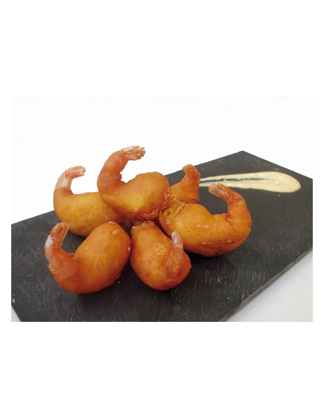 Ingredientes: Rebozado (56+1-5%) (agua, harina de TRIGO, harina de maíz, aceite de girasol, sal, gasificantes (E-450i y E- 500ii), colorantes (E-101ii y E-160aii)), cola de LANGOSTINO (44+/-5%) spp, sal, conservador METABISULFITO sódico).