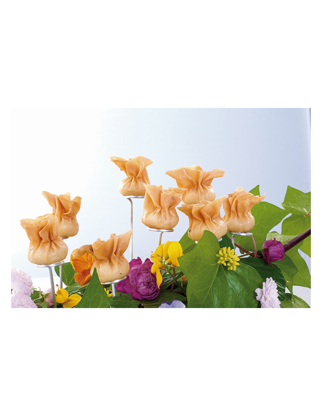 Ingredientes: Relleno 80+/-5% (agua, jamón curado 14+/-2% (jamón de cerdo, sal, azúcar, antioxidantes (E-331 , E-301 ), conservadores (E-250, E-252)), harina de TRIGO, aceite de girasol, cebolla, LECHE en polvo, base caldo pollo (sal, almidón de maíz, hidrolizado de proteína vegetal, aromas naturales, grasa de pollo, caldo de pollo natural en polvo, especias, azúcar), jamón ibérico 0,8% (jamón de cerdo ibérico, conservadores (E-250, E-252), aroma (contiene potenciadores de sabor E-621 y E-635), sal), pasta 20+/-5% (harina de TRIGO, agua).