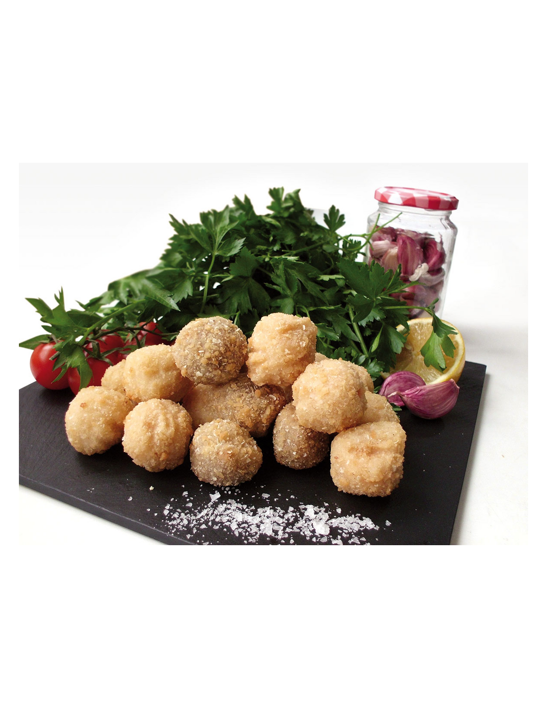 Relleno (agua, harina de TRIGO, BACALAO 15%, aceite de girasol, LECHE en polvo, sal, aroma bacalao (contiene PESCADO y LECHE), ajo), rebozado (harina de TRIGO, agua, sal, levadura, aceite de girasol, sal, almidón, espesante: E-412).