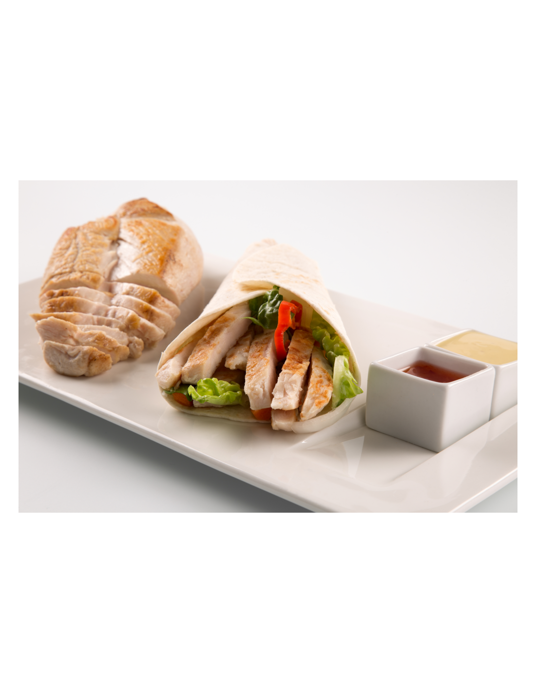 Tiras de pechuga de pollo asadas de 4,6mm. ¡Ideales para tus wraps, fajitas, ensaladas y muchos platos más!