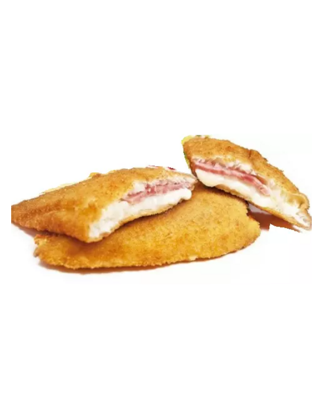 Ingredientes: Filete de Pechuga de Pollo (60%), HARINA de TRIGO, Levadura, sal, Especias, QUESO LECHE y LISOZIMA de HUEVO), Fiambre de Pollo de Pollo (60 %)), Agua, Fécula de Patata, Proteína de SOJA, Sal, Dextrosa, Estabilizantes (E407, E410, E415, E420 y E451), LACTOSA, Aromas, Antioxidantes (E301, E308 y E330), Conservadores (E250 y E262) y Potenciadores del Sabor (E621, E627 y E631), Agua, Espesante E1414 y Colorante E101. Puede contener trazas de SULFITOS.