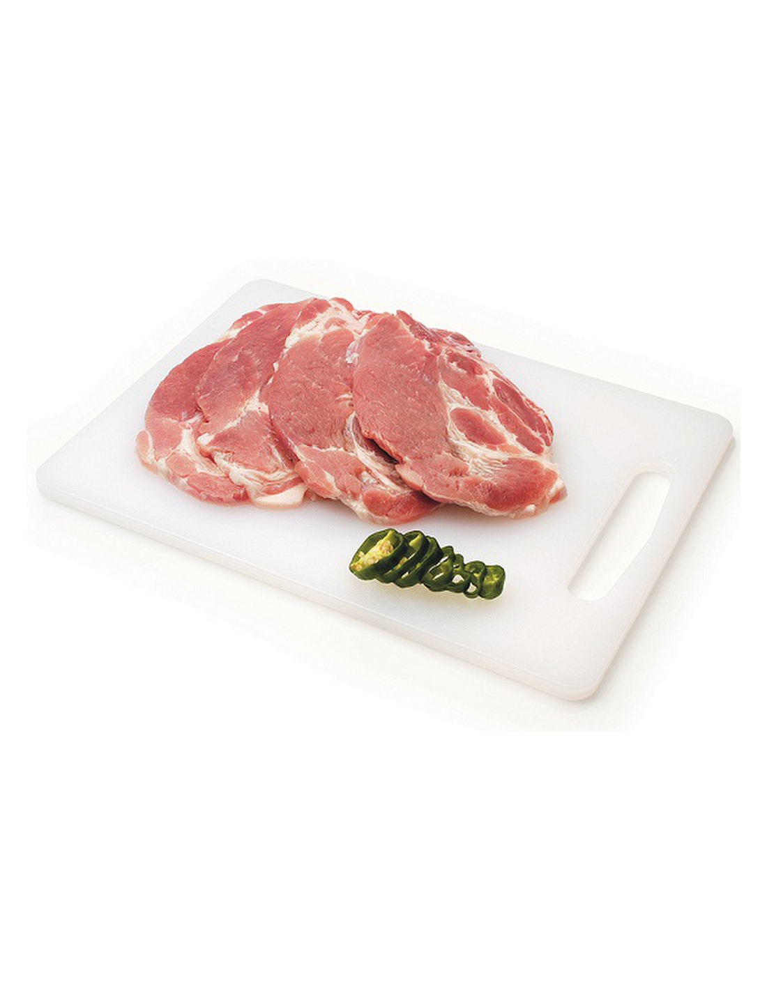 Ingredientes: Chuletas de aguja de cerdo (99,5%), agua, antioxidantes (E-301) y extracto vegetal.