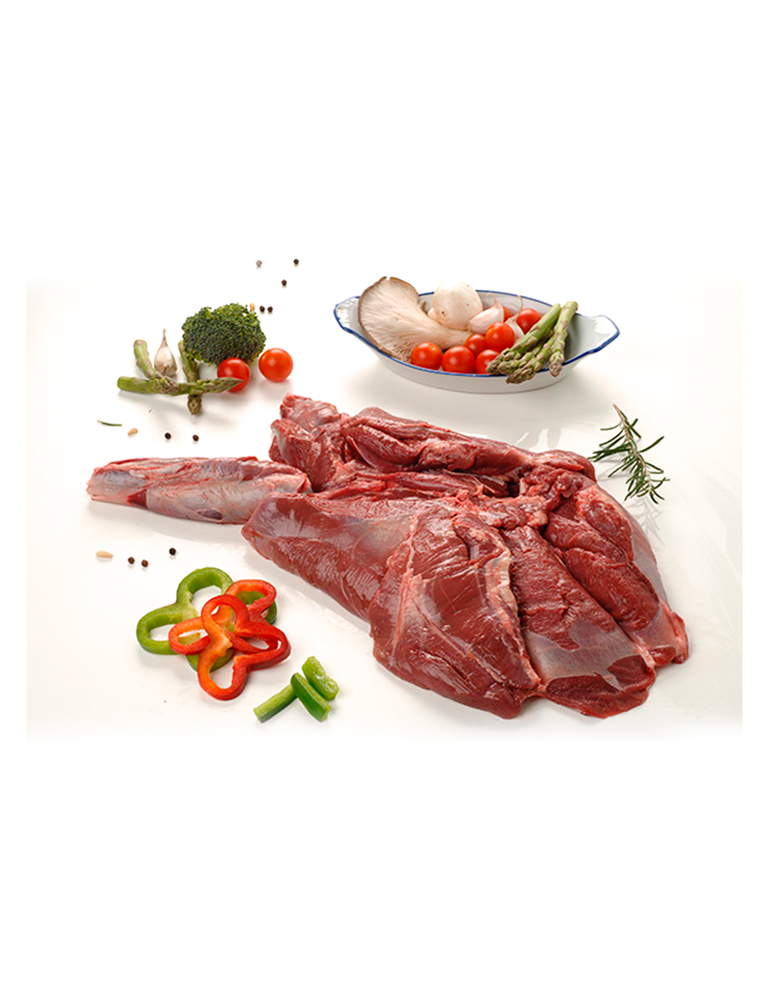 Tacos de carne procedente de la aguja (cuello), piezas de carne A (trozos de pierna y paleta) y morcillo de cérvido.