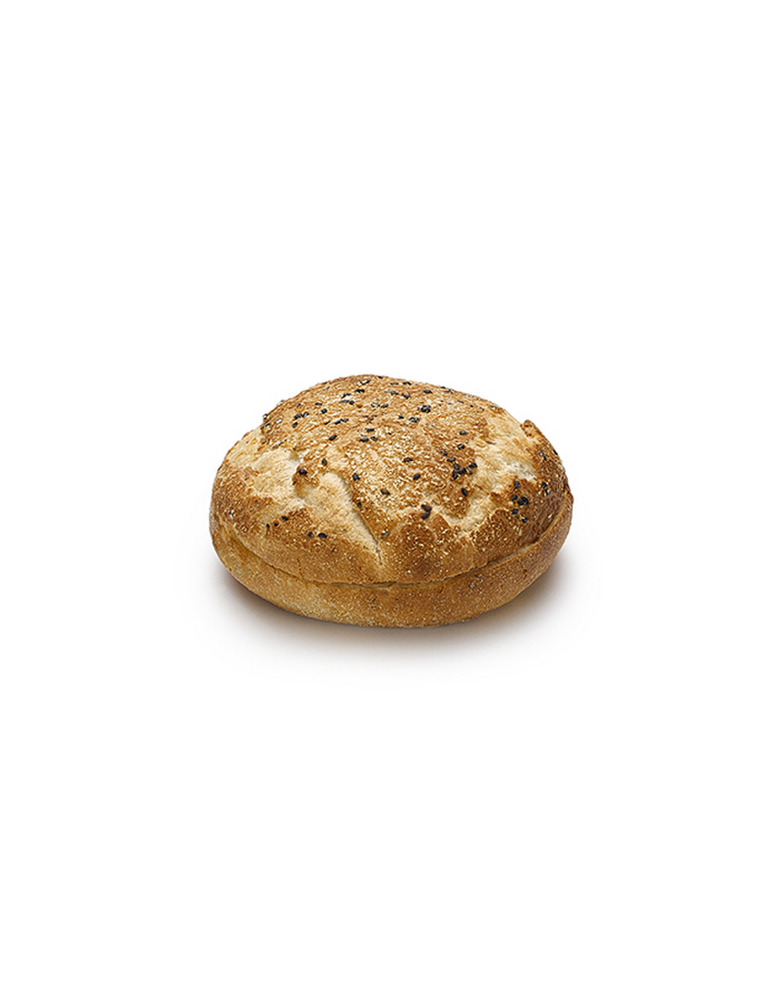 Ingredientes: Harina de TRIGO, agua, copos de patata 8%, azúcar, aceite de colza, semillas de SÉSAMO negro 1%, sal yodada, emulgente (vegetal E472e, E471), levadura, espesante (E412), levadura inactiva, harina de malta de TRIGO, dextrosa, agente de tratamiento de la harina (E300). Puede contener trazas de leche.