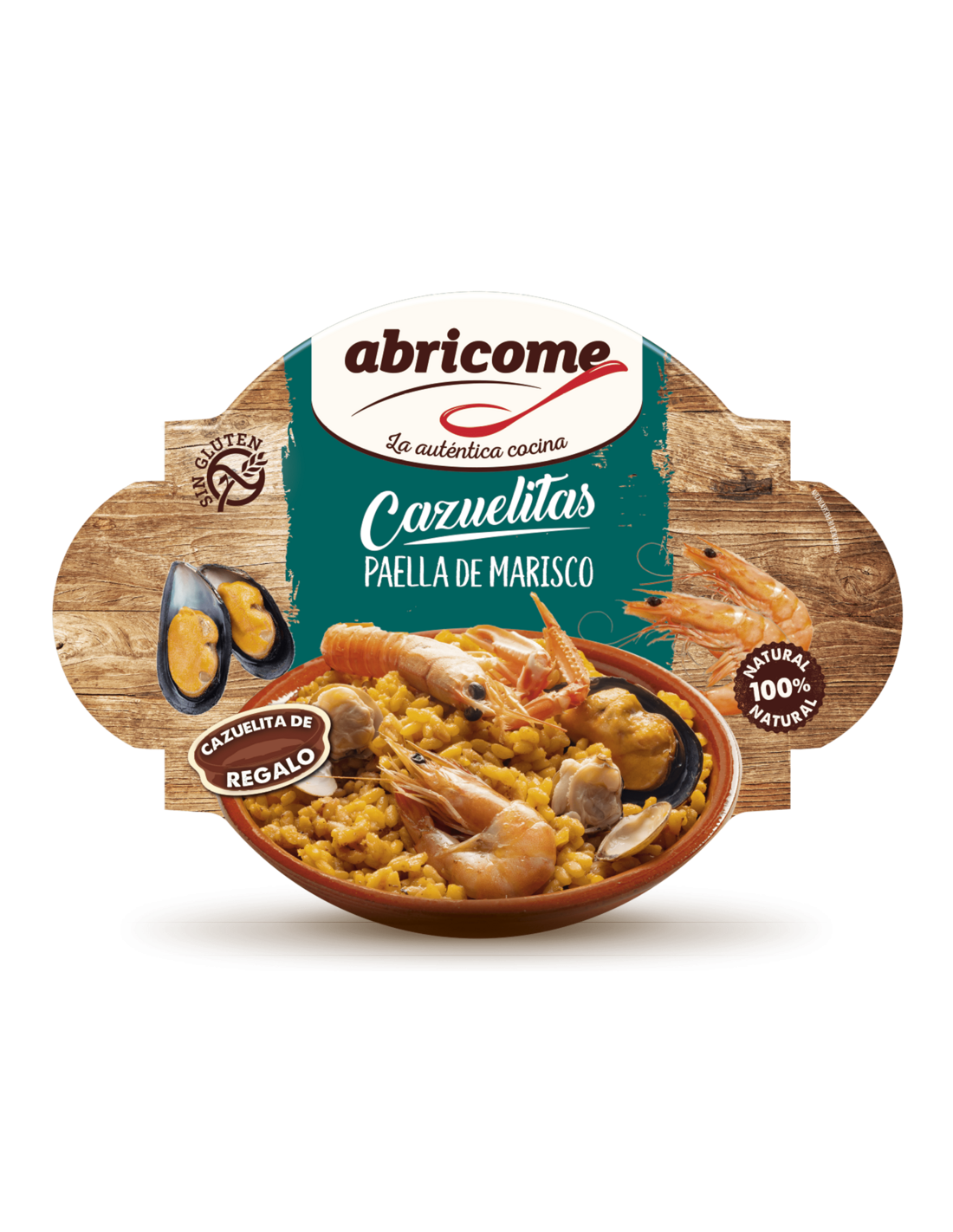 carne de mejillón, 4% langostinos , cigala, sal, ajo, tomate concentrado, colorante (extracto de cúrcuma), y estabilizante (goma xantana)