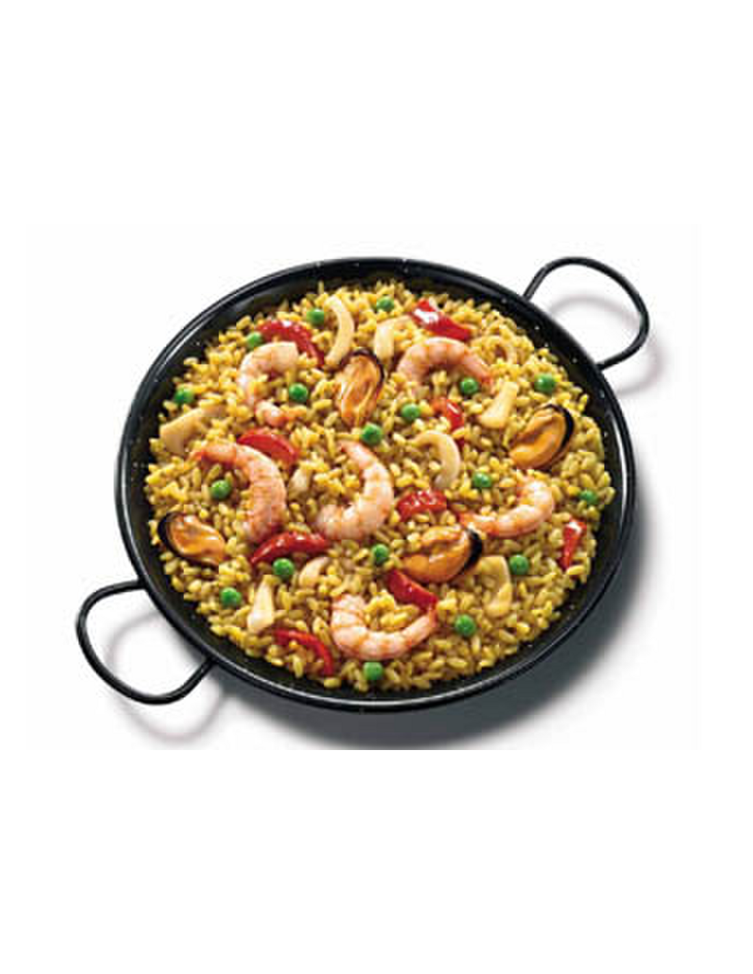 Ingredientes: Arroz con sofrito [arroz 40%, tomate, cebolla, aceite de girasol, caldo de pescado deshidratado (contiene pescado, crustáceos), pimiento, especias y hierbas aromáticas, sal, ajo, almidón], marisco 26% [gambas peladas (gamba (crustáceos), agua, sal, corrector de acidez E-331), mejillones de chile (moluscos), anillas del pacífico (poton del pacífico (moluscos), almidón, agua, espesante E-407, sal, azúcar)], aceite de girasol, guisantes, pimiento rojo.