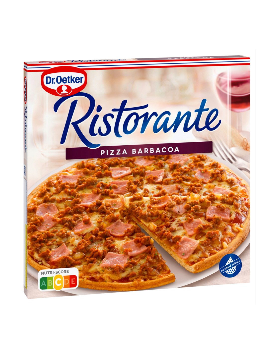 Ingredientes: Harina de TRIGO, 22% ketchup especiado sabor ahumado (agua, azúcar, pasta de tomate, vinagre de alcohol, almidón modificado, sal, aroma, azúcar caramelizado, especias, aroma de humo), agua, 7,1% QUESO MOZZARELLA, 7,1% QUESO EDAM, 6,8% carne de vacuno, 5,7% jamón cocido sabor ahumado (carne de cerdo, agua, sal, dextrosa, estabilizantes (difosfatos, trifosfatos, nitrito sódico), antioxidante (ascorbato sódico), extracto de especias, aroma de humo), 4,2% cebollas braseadas, aceite refinado de nabina, levadura, sal, azúcar, plantas aromáticas, pasta de tomate, especias, cebolla.