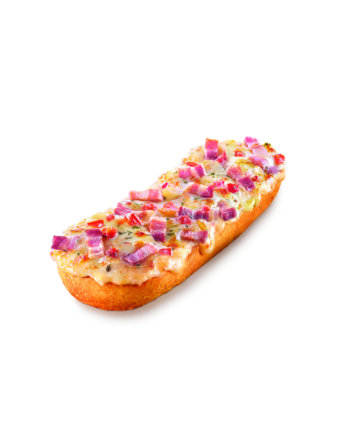 Ingredientes: Harina de TRIGO, agua, 8,6% QUESO EDAM, 7,0% tocino cocido (carne de cerdo, manteca de cerdo, sal, extractos de especias, estabilizante (nitrito sódico), humo), YOGUR, NATA ácida, trocitos de tomate, aceite refinado de nabina, 3, 1% cebolla, sal, 0,7% cebolla frita (cebolla, aceite de palma, harina de TRIGO, sal), levadura, almidón modificado, pimentón, perejil, salsa de SOJA (agua, habas de SOJA, sal, harina de TRIGO), emulgente (monoglicéridos y diglicéridos de ácidos grasos), azúcar, berenjenas, pimienta negra, dextrosa, aceite refinado de girasol, jengibre, aceite refinado de nabina, vinagre de alcohol, ajo