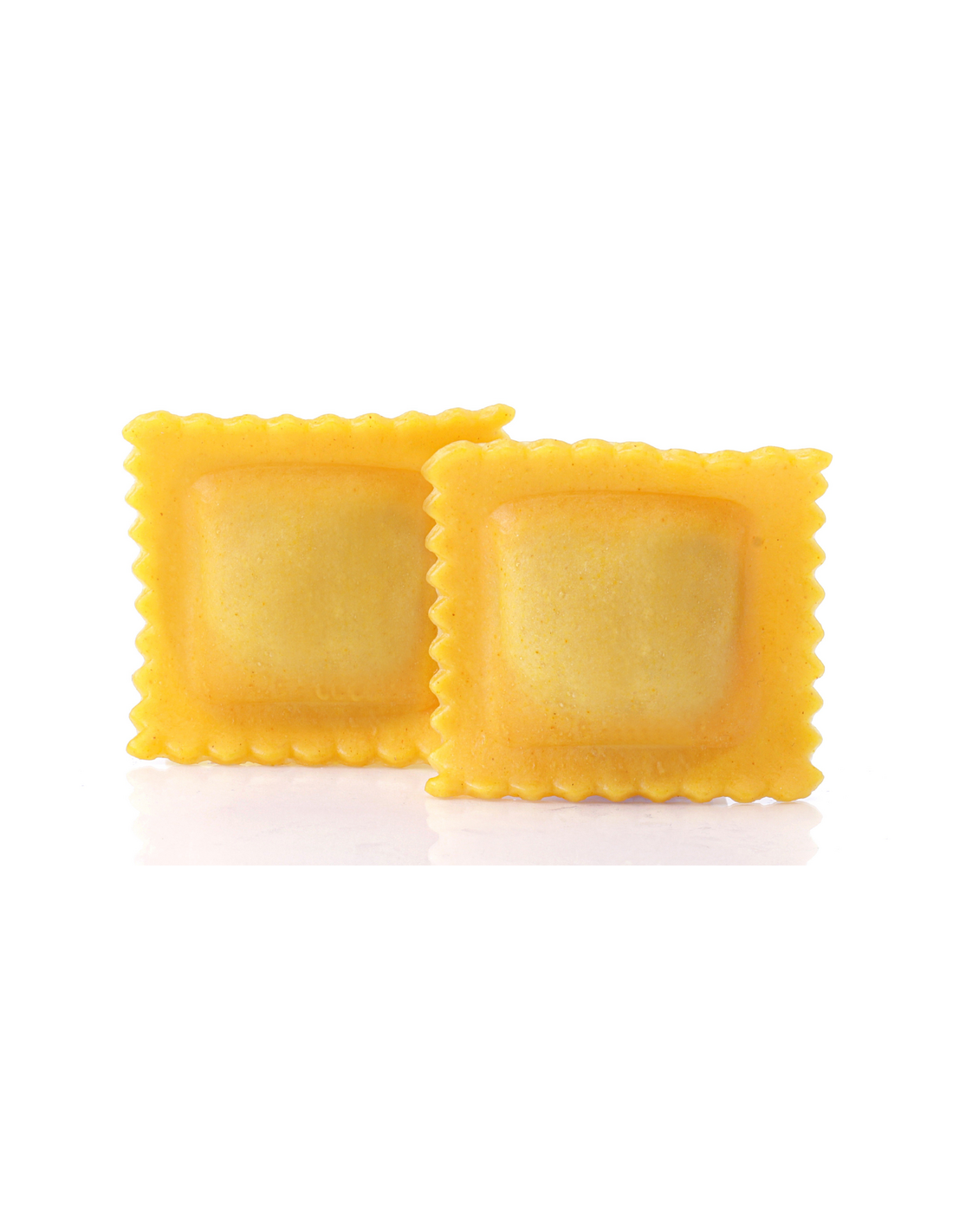 Ingredientes: Lámina (Sémola de TRIGO duro (GLUTEN), agua, HUEVO pasteurizado, tomate en polvo y cúrcuma). Relleno (Fritura de carne 50% (carne picada de vacuno 38,5%*, carne picada de cerdo 38,5%*, cebolla, aceite de oliva, sal y pimienta negra), ricotta (requesón) (suero LÁCTEO, LECHE de vaca pasteurizada, sal y corrector de acidez: ácido láctico), pan rallado (harina de TRIGO (GLUTEN), agua y levadura), agua y sal )), aceite de girasol. *Porcentaje expresado sobre la fritura de carne. Puede contener trazas de MOSTAZA.