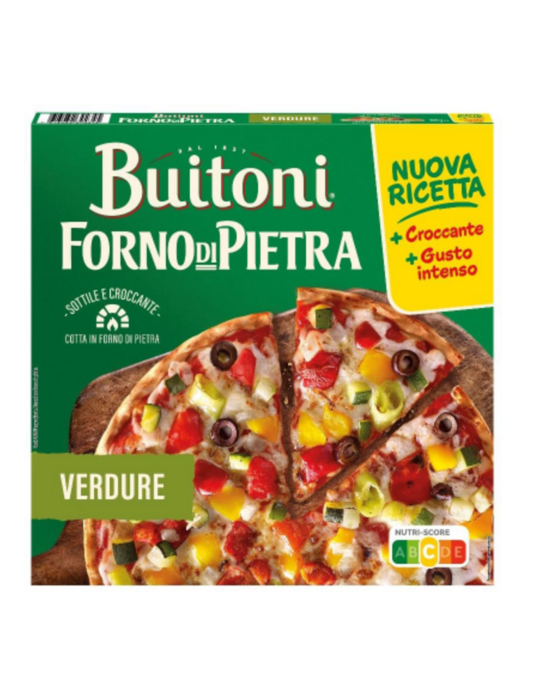 Ingredientes: Harina de TRIGO, mezcla de vegetales (25%) (pimientos morrones, calabacín, cebollas, guindillas [guindillas, sal, vinagre de alcohol, acidulante: ácido cítrico], aceitunas [aceitunas, sal]), tomates (21%), MOZZARELLA (13%), agua, aceite de colza, levadura, sal, azúcar, masa madre deshidratada (TRIGO), aceite de oliva virgen extra, plantas aromáticas y especias, ajo, almidón, proteína de guisante, vinagre de vino blanco, mosto de uva concentrado.