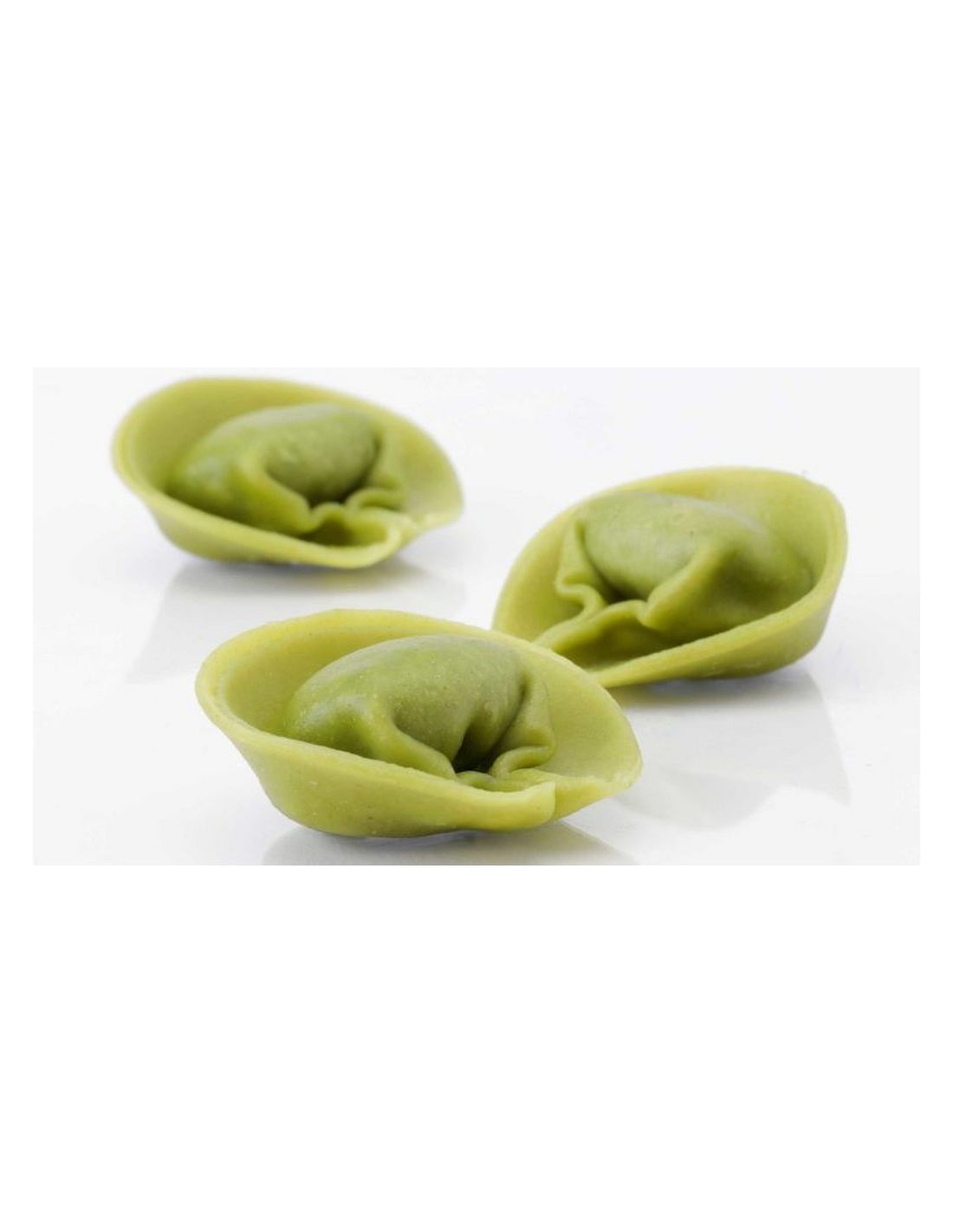 Tortellini con espinacas (tanto en el relleno como en la masa) y ricotta.