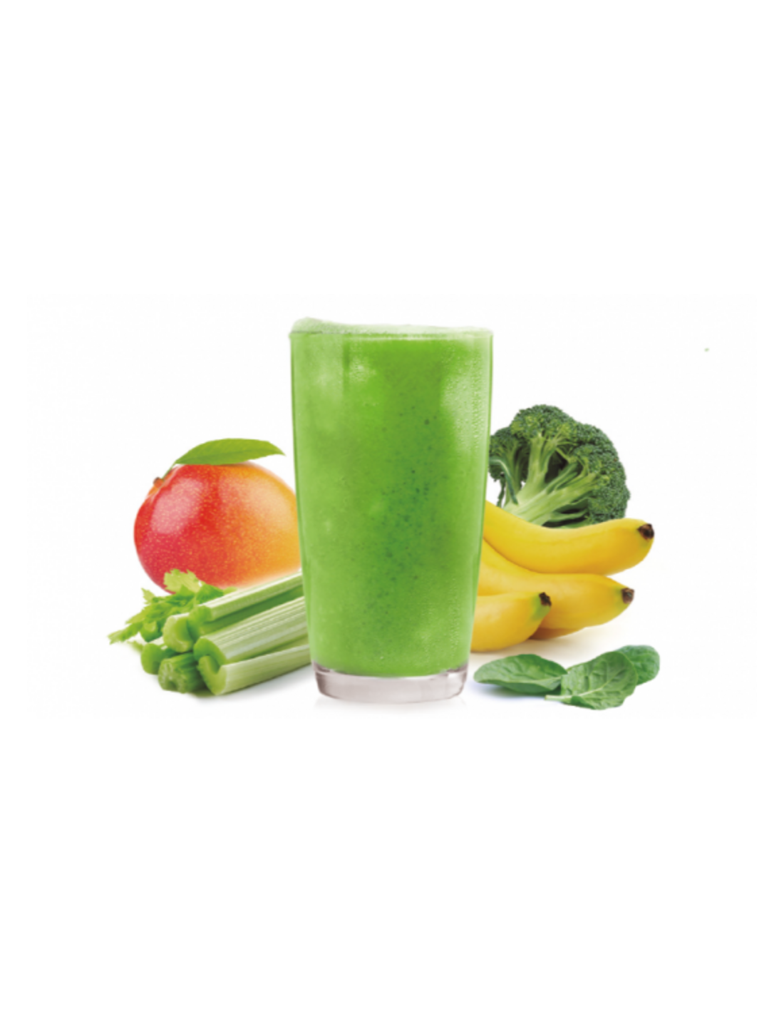 Ingredientes: Plátano (plátano, antioxidante (ácido ascórbico), corrector de acidez (ácido cítrico)), piña, mango, brócoli, espinaca, apio.