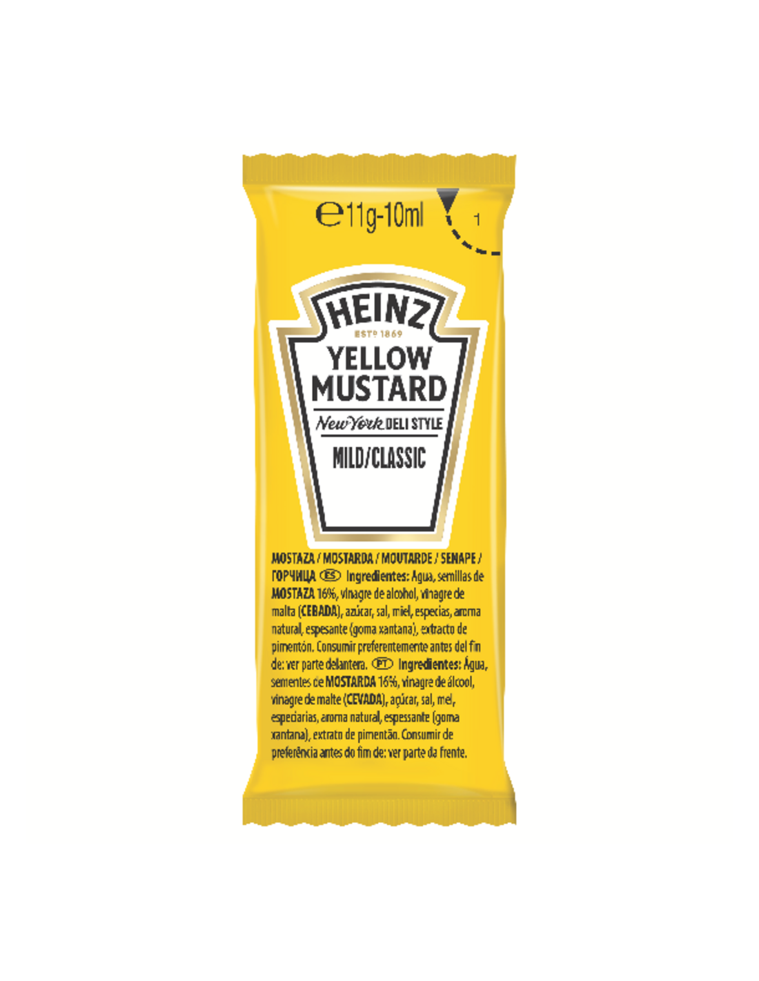 Agua, Semillas de mostaza 16%, vinagre de alcohol, vinagre de malta, azúcar, sal, miel, especias, saborizantes, espesantes – Xanthan Gum, Extracto de Pimentón